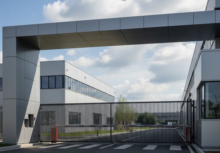 Projetamos e instalamos portões industriais e comerciais de grande porte, combinando robustez estrutural com linhas modernas que valorizam a identidade visual do seu negócio
