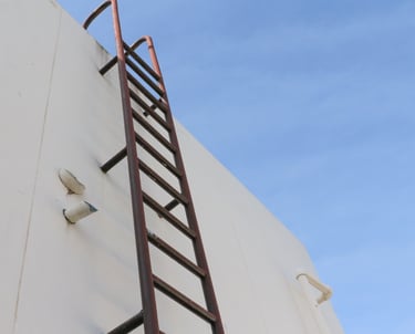 A norma exige que o acesso ao local de trabalho em altura seja seguro. Para escadas marinheiro, isto se traduz em requisitos obrigatórios: